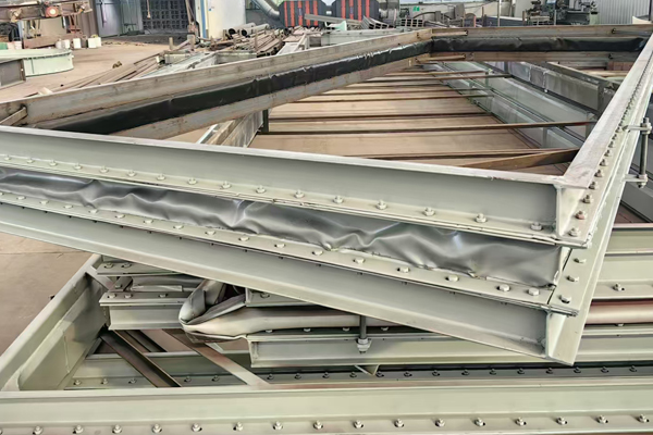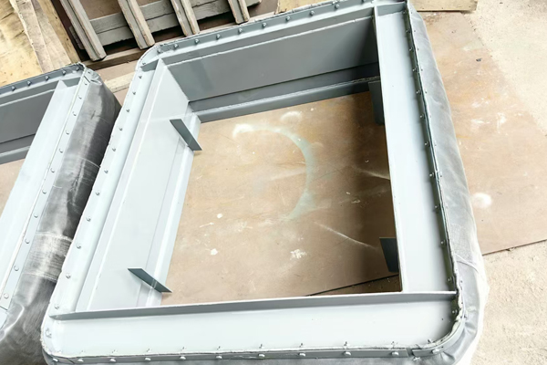 本文中所展示的图片是我们翔盛环保科技公司近期正在为山东客户生产制作的一批矩形非金属补偿器(矩形非金属膨胀节)。非金属补偿器通常由纤维织物蒙皮(硅胶为红色、氟胶为黑色)与管道接口形状相同的金属框架、以及其它的结构件所组成。