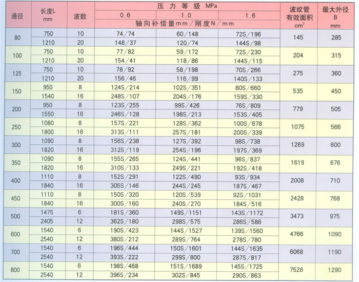 该补偿器的波纹管二端与外筒、内筒相连,波纹管受外压作用,波数较多,因此它能吸收较大的轴向位移。